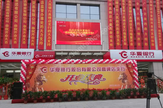 開業當日,整個銀行張燈結彩,包括政府要員等社會各界人士均到現場慶賀。在諸多喜慶元素中,最值得一提的是安裝在銀行正門上方的戶外LED顯示屏,該屏