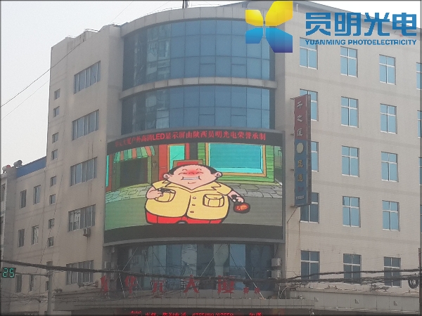 我公司所承制的顯示屏位于渭南澄城縣華元大廈,外弧結構。面積共140平方米,此項弧形屏的工程方案對設計要求很高;采用國內一線品牌管芯、控制系統,顯示屏播放畫面立體感強,色彩絢麗,畫面流暢,清晰度高,其獨特的顯示視角以其無可替代的表現形式傲視媒介群雄,深受客戶的好評。并且為澄城縣的城市形象及文化推廣起到了極大的推動作用。