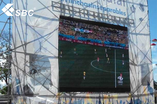 LED顯示屏在繁華的墨西哥廣場上播放著球賽,過往的路人紛紛停下匆匆的腳步觀看,不多久廣場就熱鬧非凡,為該地段提升了不少人氣。