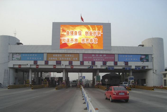 廣東揭陽揭東縣炮臺收費站戶外LED顯示屏是由“福建強力巨彩廣電科技有限公司”承建,該項目采用戶外P20全彩led顯示屏,雙面屏顯示面積為103平米,充分滿足了公路信息發布的需求,是戶外LED顯示屏在公路交通行業典型工程案例。