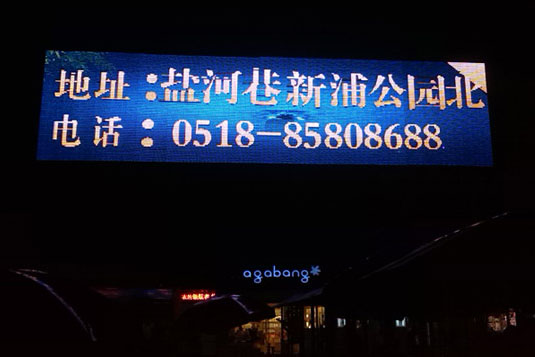 此顯示屏是由深圳市華富成電子技術有限公司于2013年3月在連云港步行街調試成功,該戶外全彩LED顯示屏廣告傳媒系統采用了P31.25規格,LED顯示屏面積為144平米。