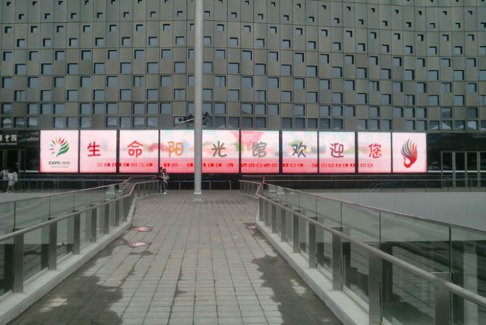 上海世博會生命陽光館戶外全彩LED顯示屏由深圳市邁銳光電有限公司承建。該戶外全彩LED顯示屏-信息發布系統能滿足上海世博會生命陽光館信息發布的需要,是戶外全彩LED顯示屏在博覽展覽信息發布應用的一個工程案例。