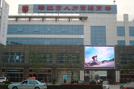金華光P10戶外全彩LED顯示屏應用于靖江市人力資源和社會保障局。