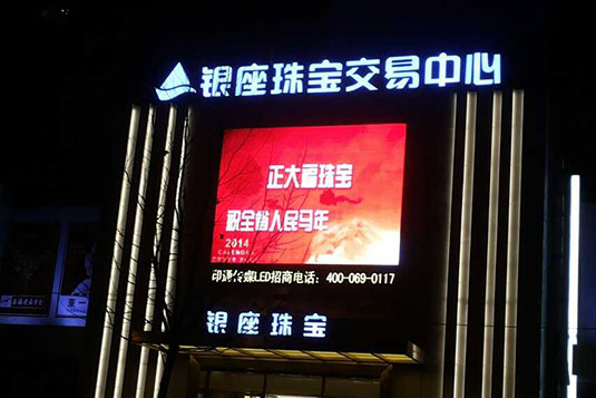 金運(yùn)河P10戶外全彩LED顯示屏應(yīng)用于濟(jì)南銀座珠寶交易中心。