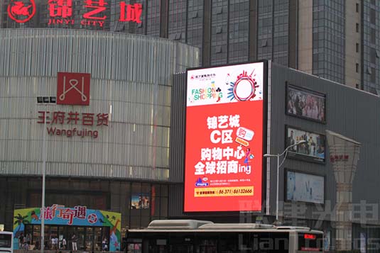河南鄭州王府井百貨大廈戶外廣告屏是由深圳市聯(lián)建光電股份有限公司承建,該項目采用186.624平米的P20戶外全彩LED屏。