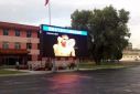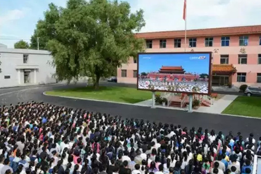 9月3日上午8點左右,繁峙縣中學大屏幕一開,眾多學校師生及分散在步行街上的市民一瞬間都聚集在了大屏幕下,觀看“9·3”大閱兵直播。該項目采用藍通P10戶外全彩LED顯示屏。