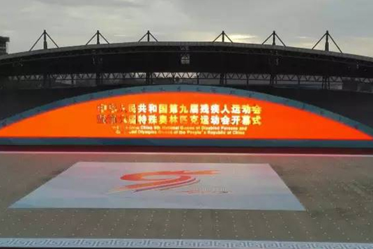 9月12日上午10點,全國第九屆殘運會暨第六屆特殊奧林匹克運動會開幕式在成都雙流體育中心舉行。由綠洲電子承建的1488㎡的P10 半圓形LED顯示屏作為本次開幕式主屏,為賽事添光加彩。