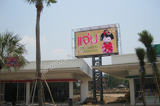 nakhonsawa加油站P16戶外全彩LED大屏幕,用于加油站各類信息的播放,廣告信息的展示,視頻的播放和溫馨提示的展現,體現了加油站獨具一格的特色。