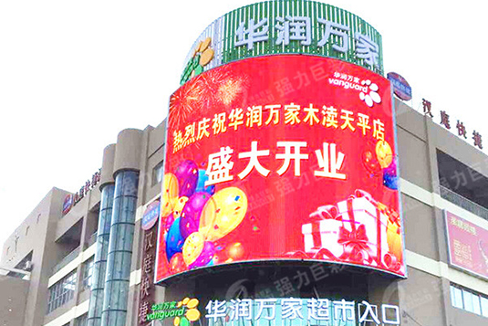 強力巨彩P16戶外全彩LED顯示屏應用于蘇州市木瀆鎮華潤萬家超市入口,該LED顯示屏面積為180平米。