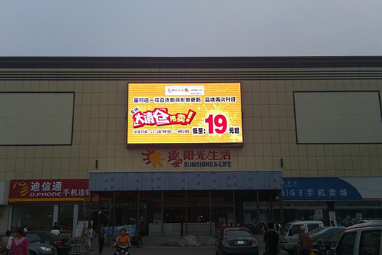 該顯示屏于2013年7月30日在陜西省韓城市陽光生活購物廣場安裝調試完工,整屏顯示面積為10.24米×6.144米=69.914平方米。