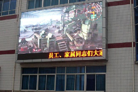 該顯示屏于2010年1月22日在陜西省寶雞市寶真鋼管廠安裝調試完工, 該活動中心8.64M*4.8M=41.472㎡;采用戶外防水P10實像素模組制作而成,白平衡亮度達到8000CD/M2 以上。在陽光直射的條件下顯示畫面依然清晰可見。