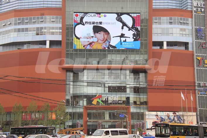 “北京朝陽大悅城廣告?zhèn)髅綉敉馊蔐ED顯示屏大屏幕顯示系統(tǒng)”由利亞德光電股份有限公司承建。該戶外全彩LED顯示屏廣告?zhèn)髅较到y(tǒng)采用了P25規(guī)格,LED顯示屏面積427.6平米,成為北京朝陽大悅城廣告?zhèn)髅降闹匾脚_,是戶外全彩LED顯示屏在戶外廣告?zhèn)髅綉?yīng)用的一個經(jīng)典工程案例。