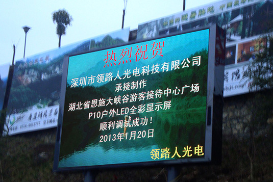 湖北恩施大峽谷游客中心戶外全彩LED顯示屏采用P10規格,面積268平米。