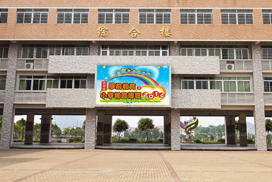 江門紫茶小學(xué)戶外全彩LED顯示屏采用P10規(guī)格,面積37平米。