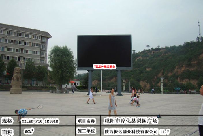 “咸陽淳化縣梨園廣場廣告傳媒戶外全彩LED顯示屏大屏幕系統”由陜西振遠科技發展有限公司承建。該戶外全彩LED顯示屏廣告傳媒系統采用了P16規格,LED顯示屏面積60平米,能夠充分滿足咸陽淳化縣梨園廣場廣告傳媒的需要,是戶外全彩LED顯示屏在戶外廣告傳媒應用的一個經典工程案例。
