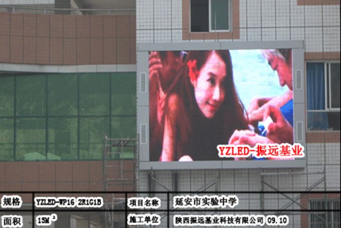 “延安百米大道實驗中學戶外全彩LED顯示屏”由陜西振遠科技發(fā)展有限公司承建。該戶外全彩LED顯示屏信息發(fā)布系統(tǒng)采用了P16規(guī)格,LED顯示屏面積16平米,能夠充分滿足百米大道實驗中學信息發(fā)布的需要,是戶外全彩LED顯示屏教育行業(yè)信息發(fā)布應用的一個經典工程案例。