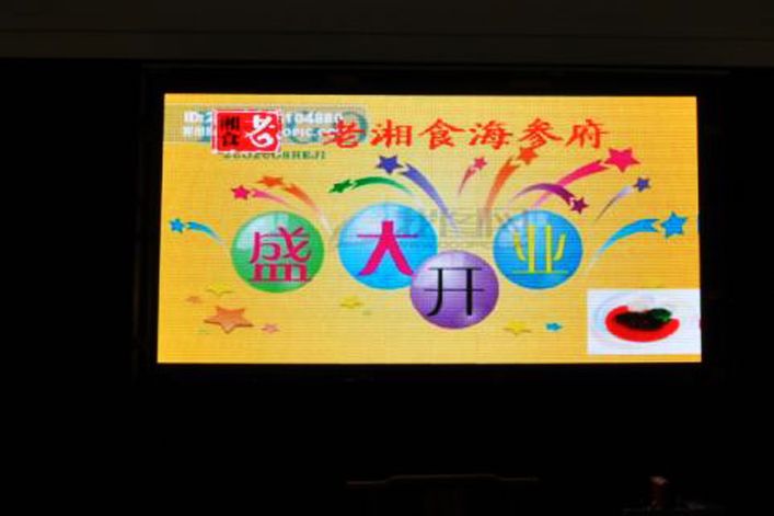 老湘食海參府位于長沙星沙汽車站旁邊香檳小鎮(zhèn),是老湘食王振華老總創(chuàng)建的第五家分店,也是長沙老湘食餐飲有限公司的旗艦店。旗艦店采用的都是高品質(zhì)的設(shè)備。成展科技的P5全彩顯示屏有幸成為了點(diǎn)睛之作,懸掛在大廳的迎賓臺(tái)后,吸引住客戶進(jìn)門后的第一眼目光。