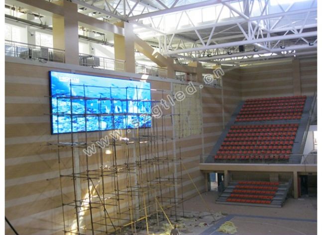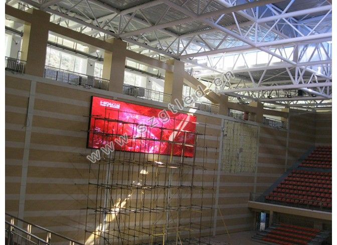 采用前維護,屏體配備有電視卡,視頻處理器,可以顯示DVD碟機,也可顯示籃球場上4個高清攝像頭所拍攝的實時畫面。