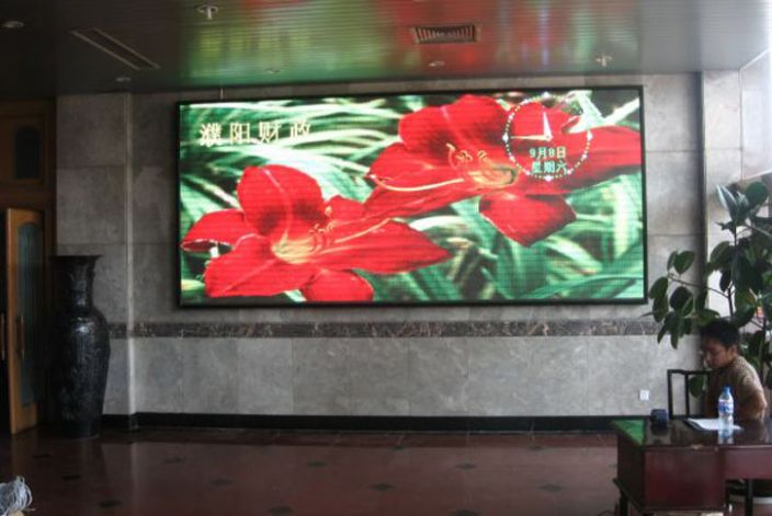 “河南濮陽市財政局室內全彩LED顯示屏大屏幕顯示系統”由“河南鑫安嘉光電科技有限公司”承建。該室內全彩LED顯示屏系統采用了P7.62規格,LED顯示屏面積10平米,是室內全彩LED顯示屏在政府機關信息應用的一個經典工程案例。