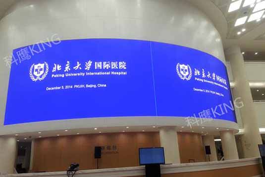 北京大學國際醫(yī)院門診大廳的超大弧形LED顯示屏最為引人注目。此顯示屏為室內P4全彩高清LED顯示屏。面積達:102m2,鑲嵌于弧形門診大廳內。與整個門診大廳的造型融為一體,美觀、大方、時尚,該屏幕在“北京大學國際醫(yī)院”開業(yè)慶典一經點亮,就震撼全場。