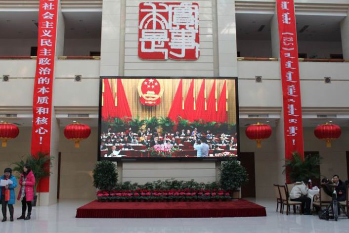 “內蒙人民會堂室內全彩LED顯示屏大屏幕顯示系統(tǒng)”由“內蒙古今日科技有限責任公司”承建。該室內全彩LED顯示屏系統(tǒng)采用了P5規(guī)格,LED顯示屏面積12平米。