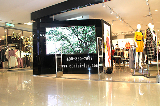 石家莊only專賣店室內全彩LED顯示屏,采用P4規格,屏體面積為3.6平米。