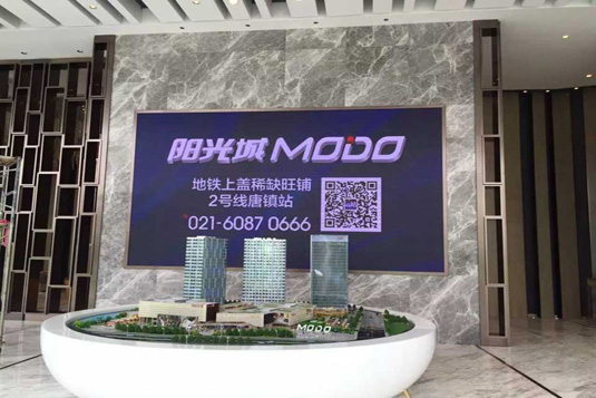 上海陽光城控股集團室內(nèi)全彩LED顯示屏,草原P4規(guī)格,面積16.5平米。