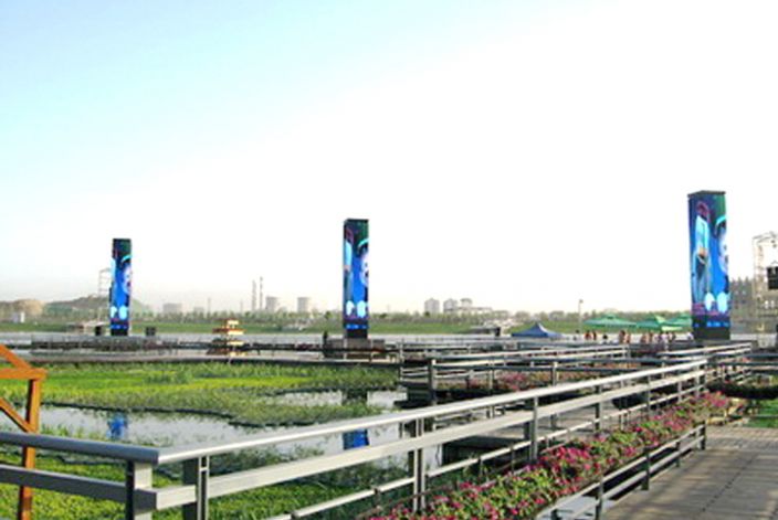 “西安世園會(huì)灞河1號(hào)碼頭異形LED顯示屏大屏幕顯示系統(tǒng)”由西安都明光電有限公司承建。該異型LED顯示屏大屏幕系統(tǒng)采用了P20規(guī)格,LED顯示屏面積98.304平米,充分的考慮西安世園會(huì)需求,是異型LED顯示屏在博覽展覽中的一個(gè)經(jīng)典工程案例。