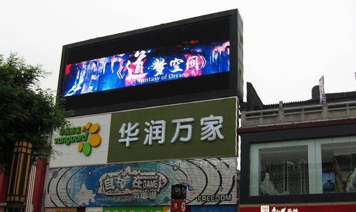 這塊屏位于西安曲江大唐不夜城華潤萬家樓頂,誰家做的呀?