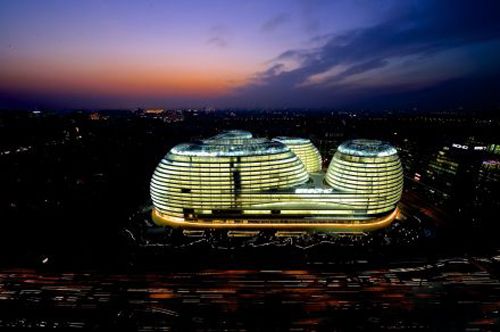 據扎哈·哈迪德建筑事務所介紹,銀河SOHO總建筑面積近33萬平方米,建筑師扎哈運用參數化設計,將銀河SOHO打造成一個360°建筑世界,每棟建筑個體都有中庭和交通核心,并在不同層面上融合在一起,沒有角落,創造了連續流動的空間。