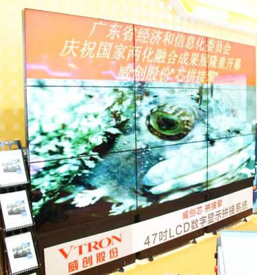 本次展覽會展覽規(guī)模達22000平方米,邀請了各省、自治區(qū)、直轄市工業(yè)和信息化主管部門及為兩化融合發(fā)展做出突出貢獻的企業(yè)參展。威創(chuàng)作為廣東省信息和經(jīng)濟化委員會邀請企業(yè),攜帶47"的超高分辨率液晶數(shù)字顯示拼接墻系統(tǒng)(以下簡稱“液晶拼接墻”)參加。