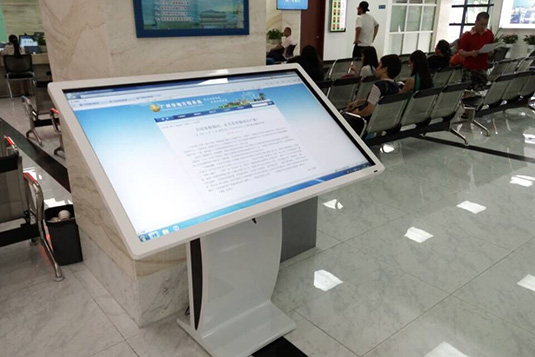 針對蘿崗地稅項目,客戶引進廣州中科英冠電子兩臺55寸指引查詢機終端觸控一體機。