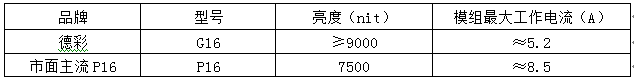 顯示亮度和LED最大工作電流對比【以我司G16(P16)為例】