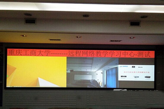 此項目中校方采用了安恒集團研發的BAVG會議顯示系統對3臺松下PT-SLZ66C工程投影機進行畫面處理,同時接入1臺松下高清攝像頭AW-HE45S,通過遠距離投射融合的應用方式,投射在2m*8m的幕布上。實現了“會議+PPT+發言人介紹+會議/教學流程”的顯示模式,出色的打造出一個高效的溝通平臺,滿足了其日常召開校園會議、大型教學等需要。